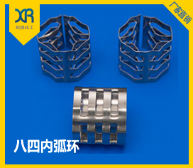 • 八四內(nèi)弧環(huán)該填料具有合理的幾何對稱性,構(gòu)造均勻性好及高的空隙率,八弧圈與四弧圈順軸向交替安排,各弧段沿徑向環(huán)內(nèi)折進(jìn),從而使填料表面連續(xù)而不斷開,且在空間均勻頒布與鮑爾環(huán)相比,通量可提高15-30%,壓降減少20-30%。